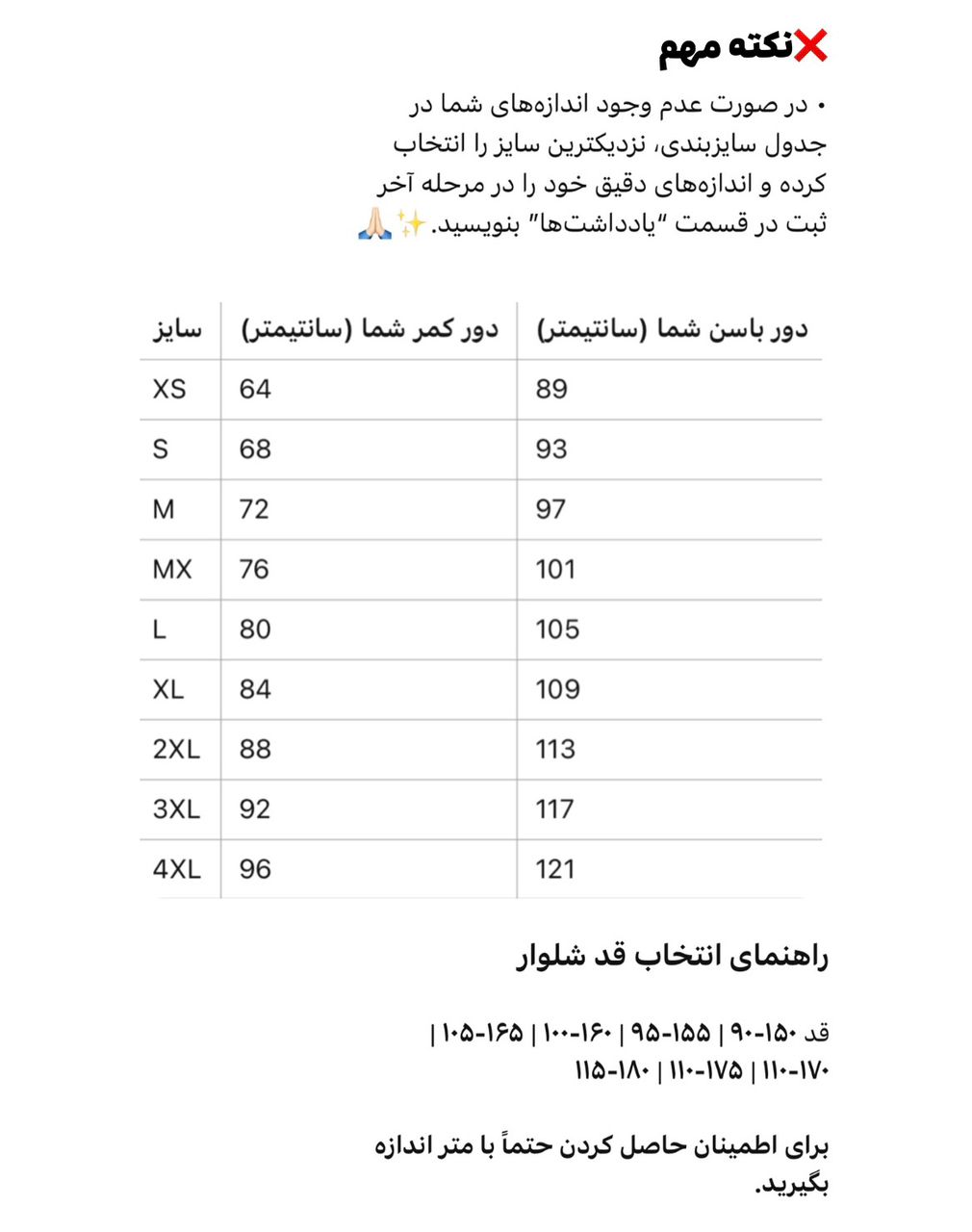 - پشت کمری شلوار کش نمیخورد(در انتخاب سایز دقت کنید)
