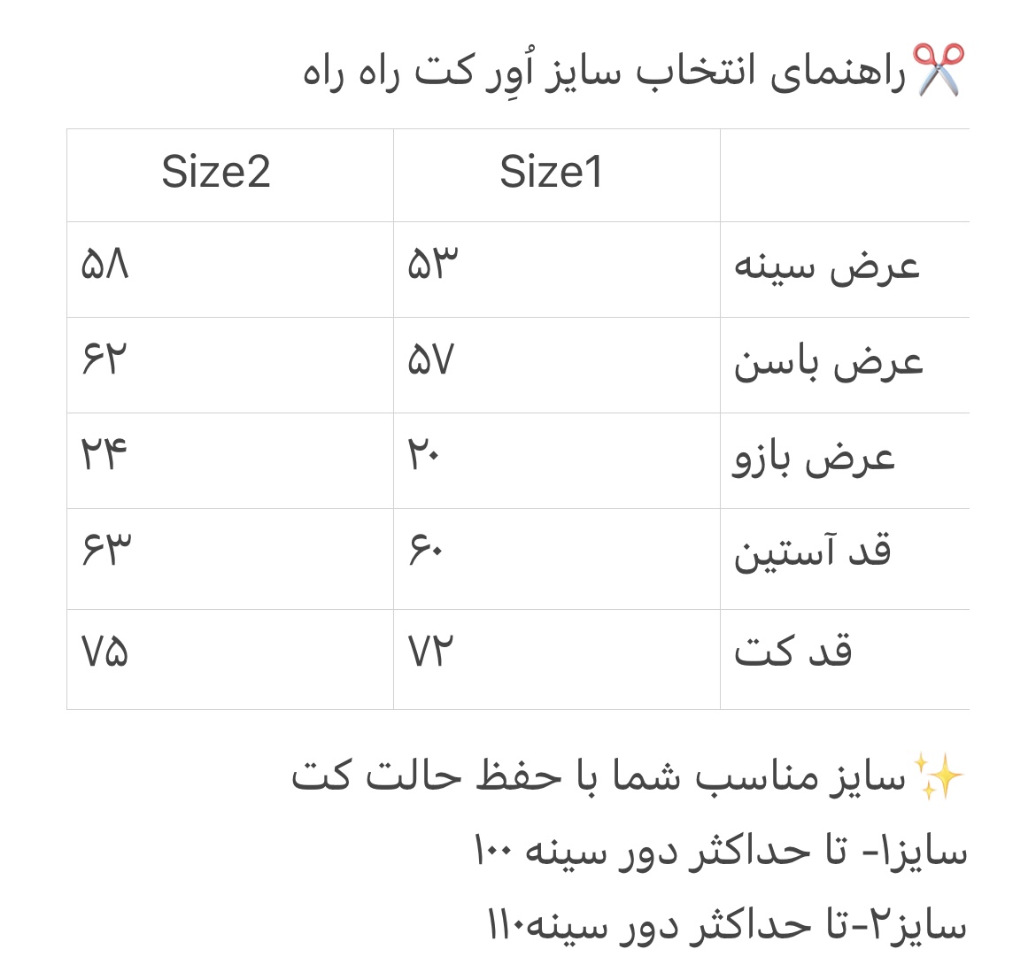 - قبل از انتخاب سایز و قد جدول سایزبندی را با دقت چک کنید